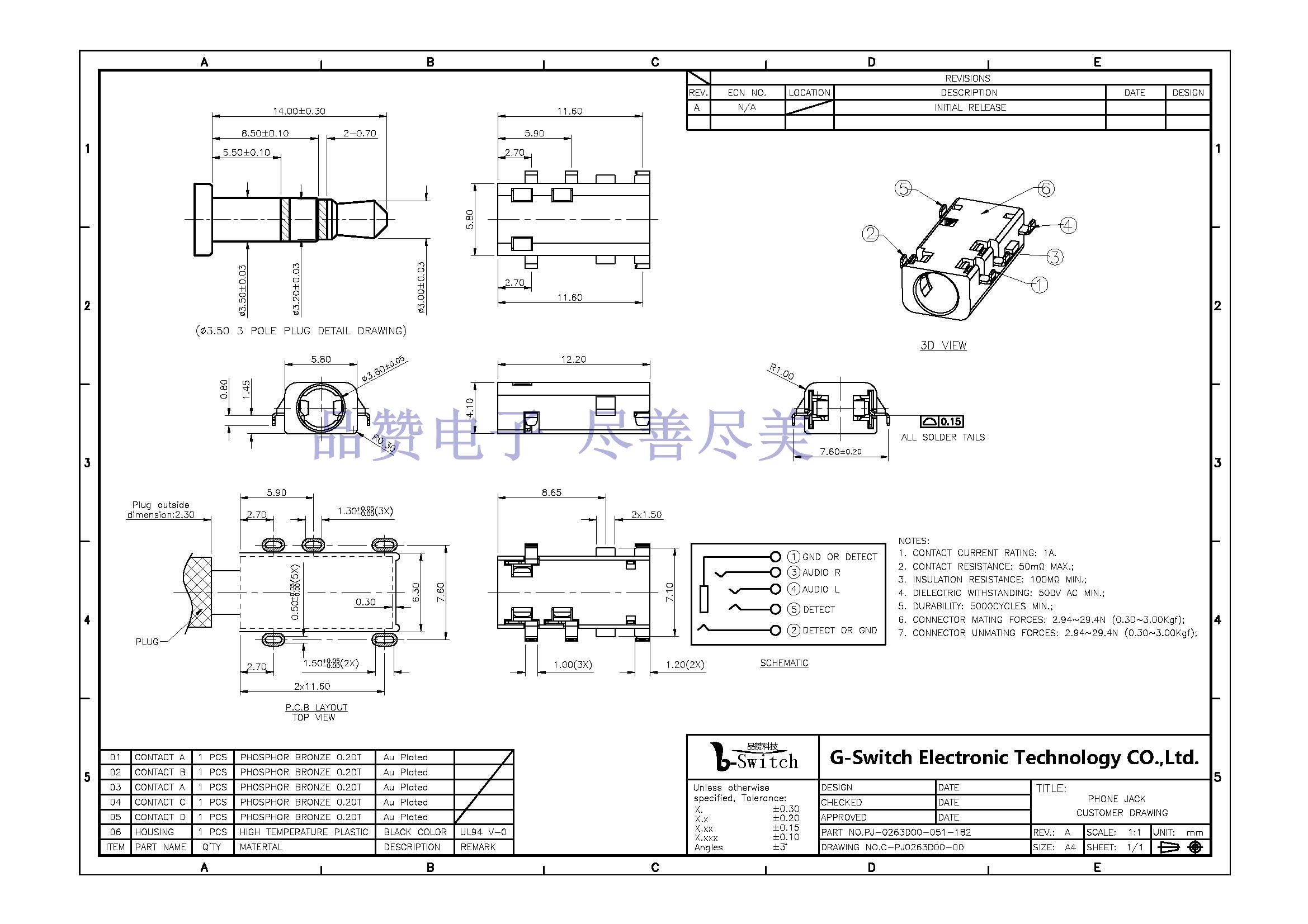 Designation 品名: Φ3.5 PHONE JACK
