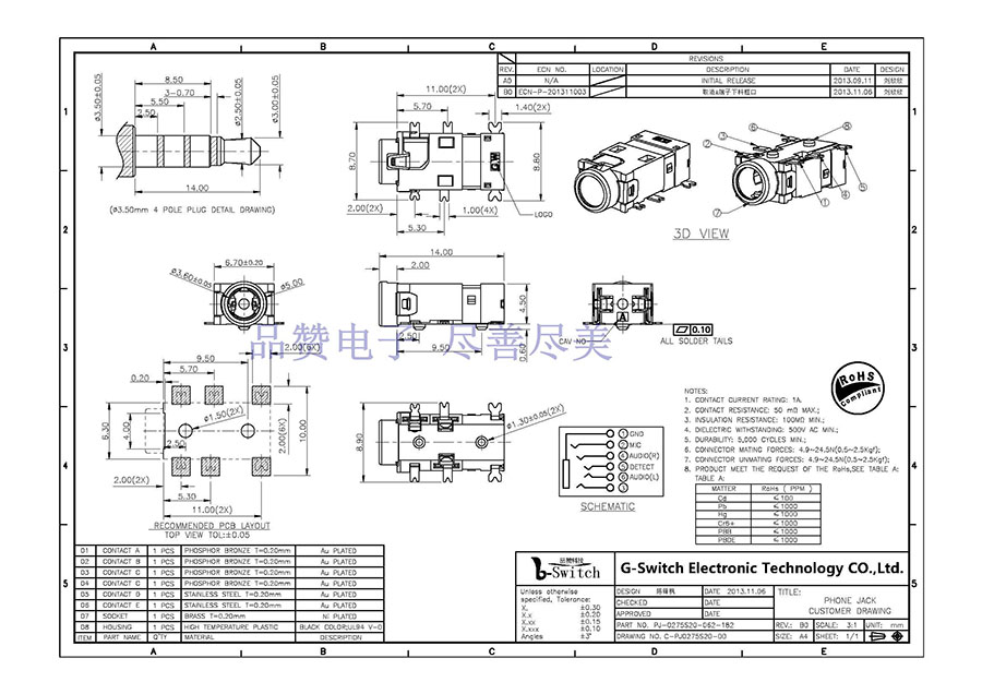 Designation 品名: Φ3.5 PHONE JACK