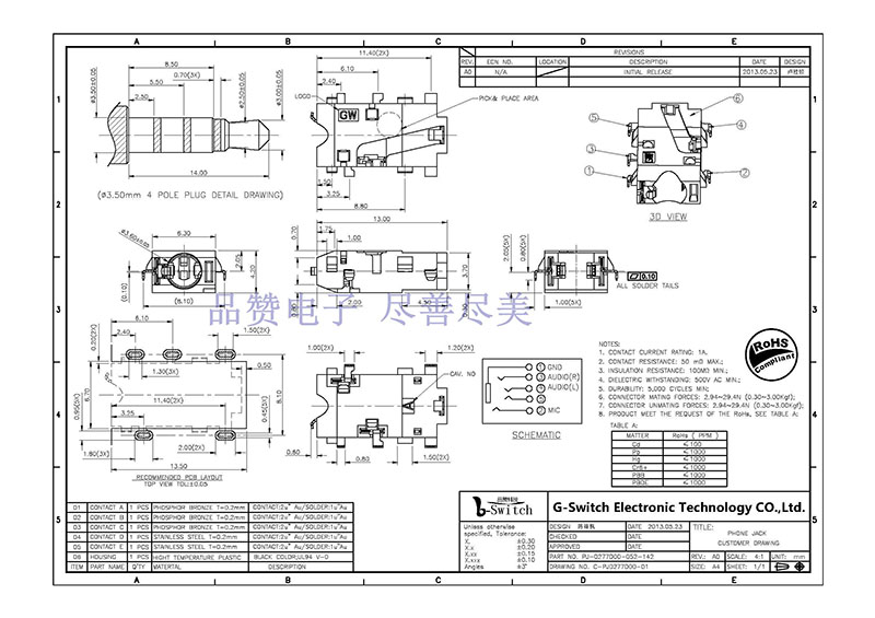 Designation 品名: Φ3.5 PHONE JACK