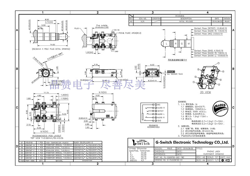 Designation 品名: Φ3.5 PHONE JACK