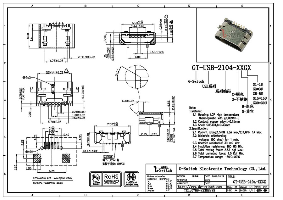 端子电镀:G1=1U、G3=3U、G15=15U、G30=30U