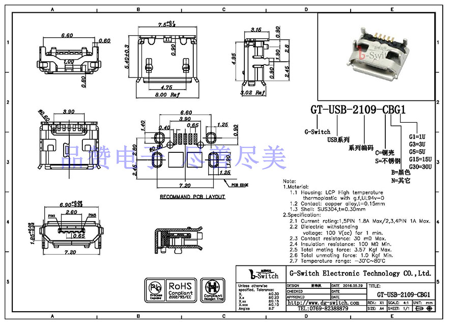 端子电镀:G1=1U、G3=3U、G15=15U、G30=30U