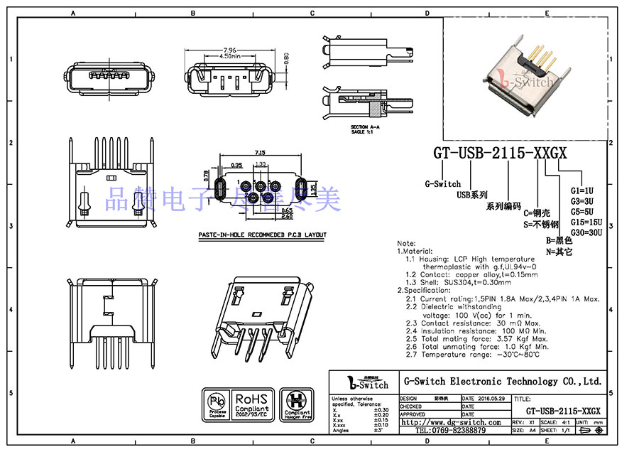 G-Switch 东莞品赞电子科技有限公司 www.dg-switch.com 主要生产:MICRO USB母座、防水USB母座、牛角型MICRO USB母座、MICRO USB带钢片、7.2/6.6 牛角型 MICRO USB母座、前插后贴MCIRO USB母座、全贴型USB母座、7.2/4.85 MICRO USB母座、MICRO USB CONN. |
