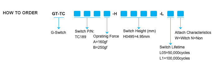 硅胶贴片轻触开关,柄长4.95mm,动作力:160、250gf。