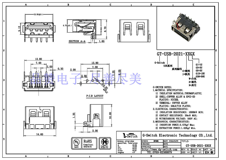 端子电镀:G1=1U、G3=3U、G15=15U、G30=30U
