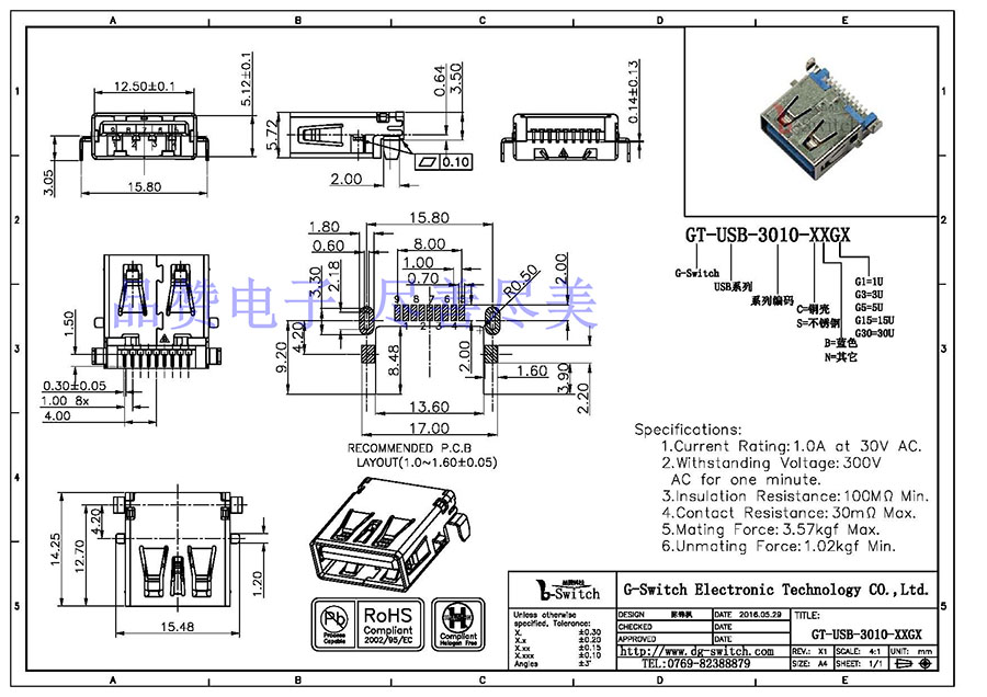 端子电镀:G1=1U、G3=3U、G15=15U、G30=30U