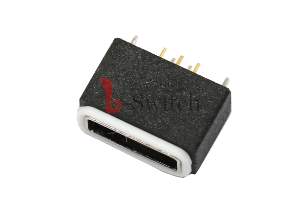Type c 6PIN:全贴款/四脚插板款;L6.5/6.8mm;VBUS部分可实现5A电流,外壳有带弹与无弹款。