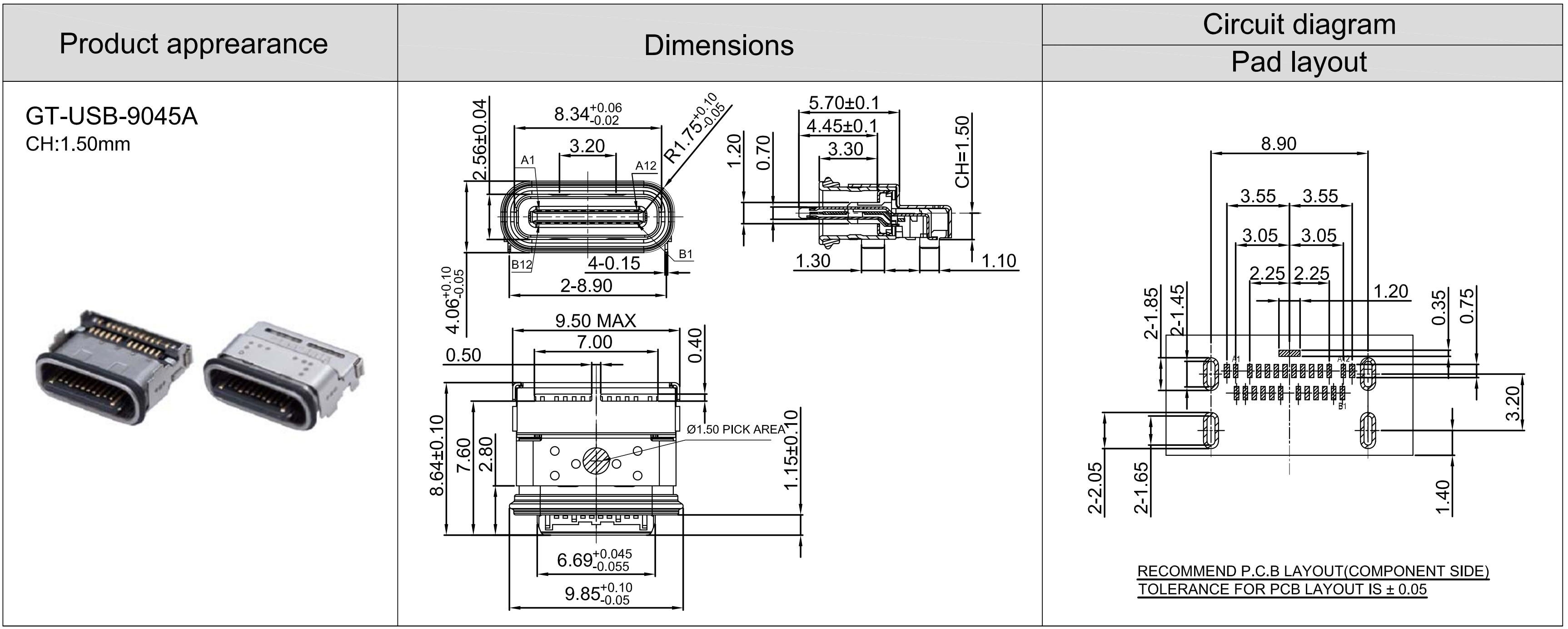 品赞24PIN 防水TYPE-C母座:GT-USB-9045A可以代替安费诺(Amphenol)124018802112A、泰科(TE)连接器2305018-2,符合IP68防水等级,既有人工汗实验、纯化使用、离子交换、连续电离子测试48小时等严苛的测试标准;可以达到5A电流标准以及USB GEN2的高速传输标准。以上的是品赞在2021年自我研发和设计的生产的USB-C母座,并解决了行业回流焊生产后不防水等特性问题。