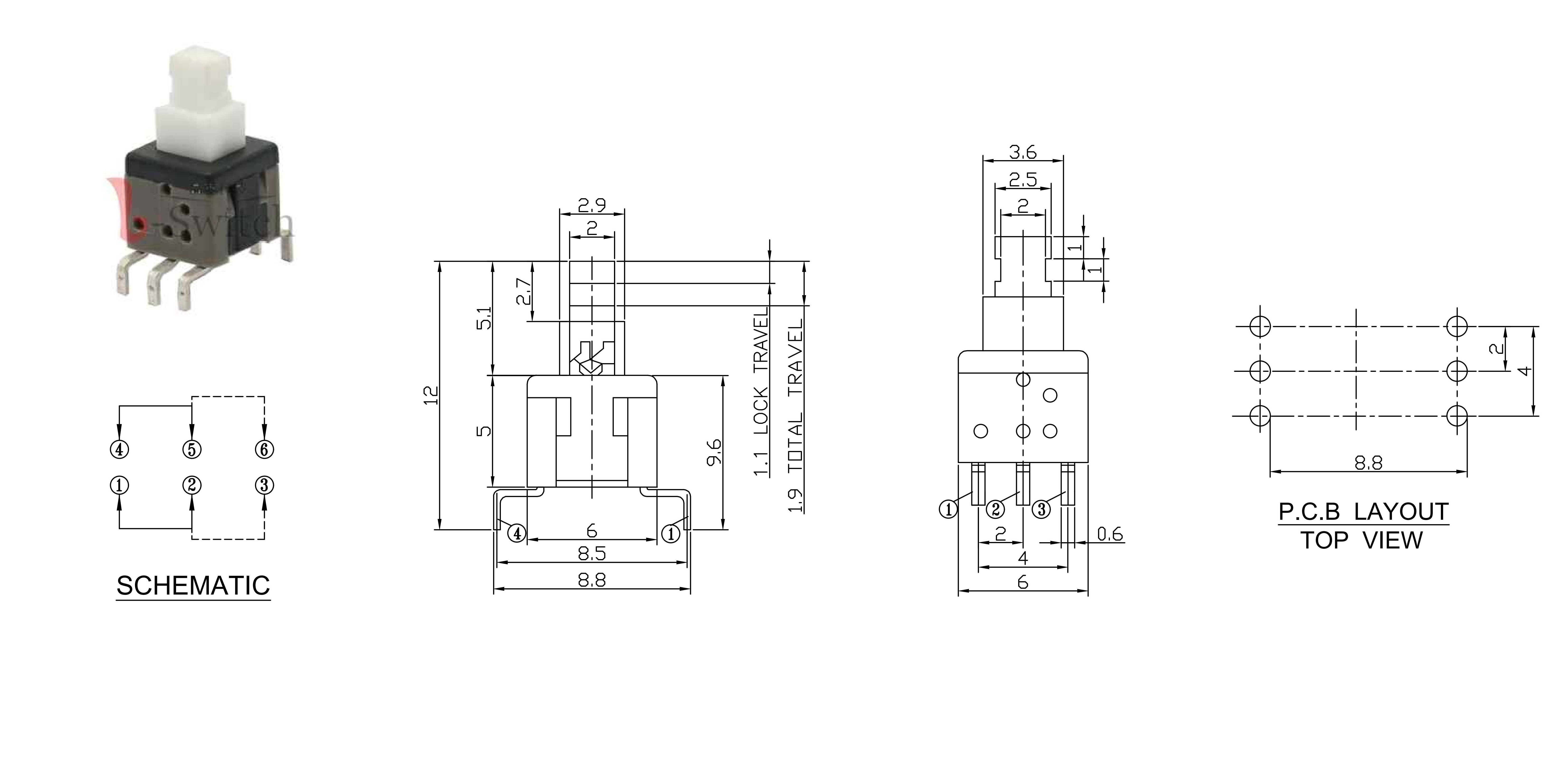 | 1 | PS-5850DCX-6PL | 弯角高头自锁,行程1.0mm,按动力180/250gf |