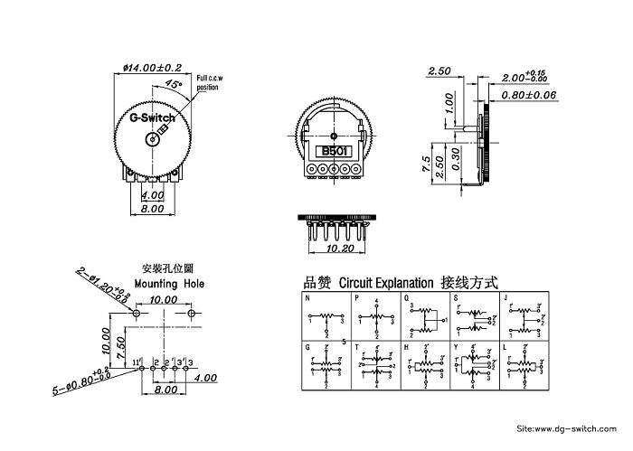 额定功率 Ratdf power:0.03W                                         回转止挡强度Rated power:More than 0.6Kgf.cm