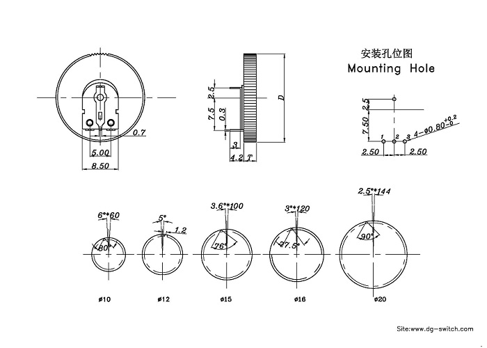 最高使用电压 Max.oparating voltage:50VAC 12VDC 旋钮的押拉强度operating voltage:More than 0.5 Kg