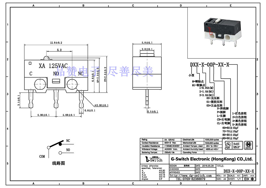 适用范围:该承认书指微动开关(DM系列)的一般使用范围。