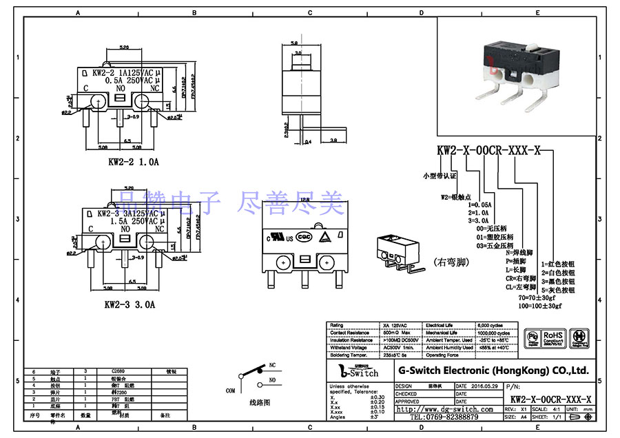 适用范围:该承认书指微动开关(DM系列)的一般使用范围。