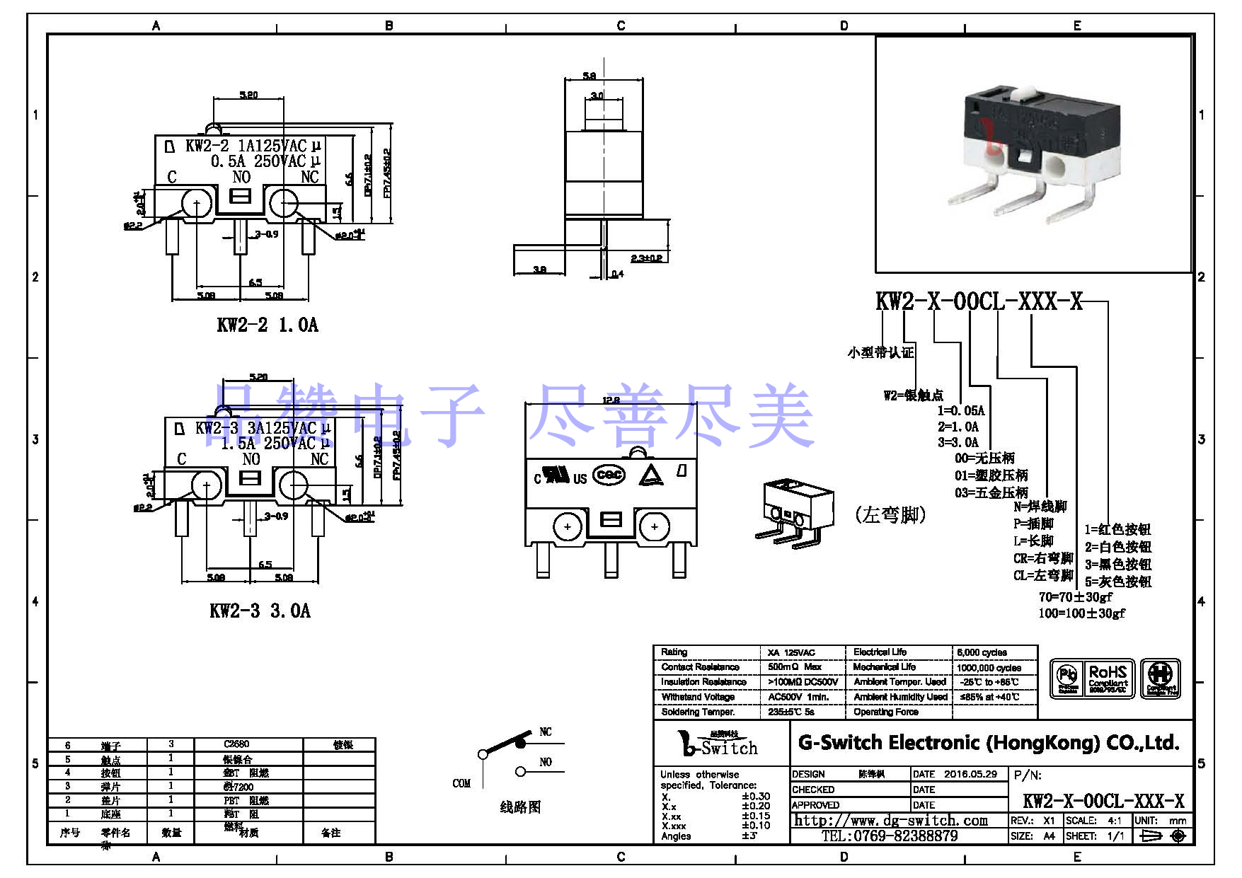 适用范围:该承认书指微动开关(DM系列)的一般使用范围。