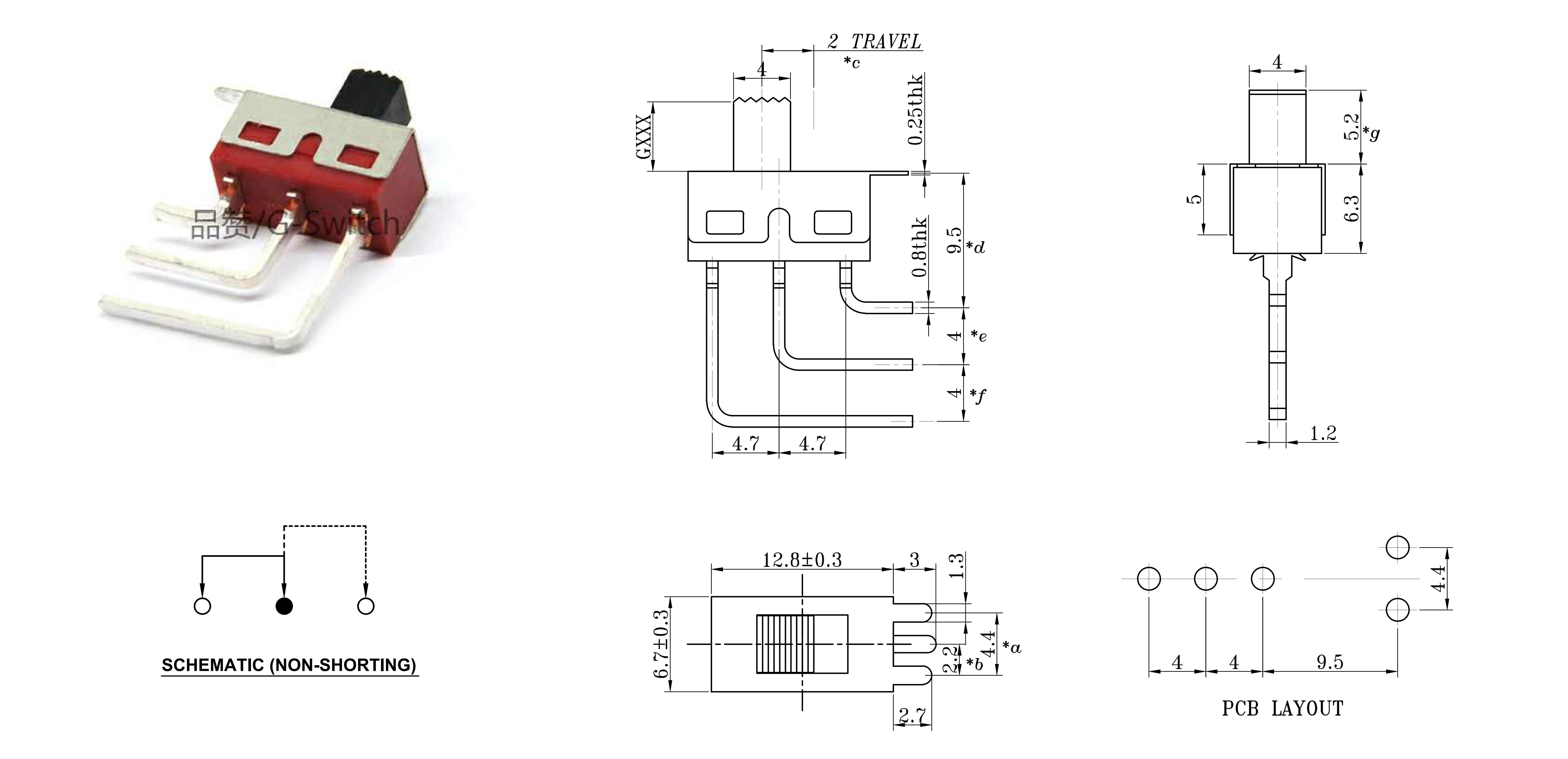 CONTACT ARRANGEMENT: 1P2T SLIDE SWITCH