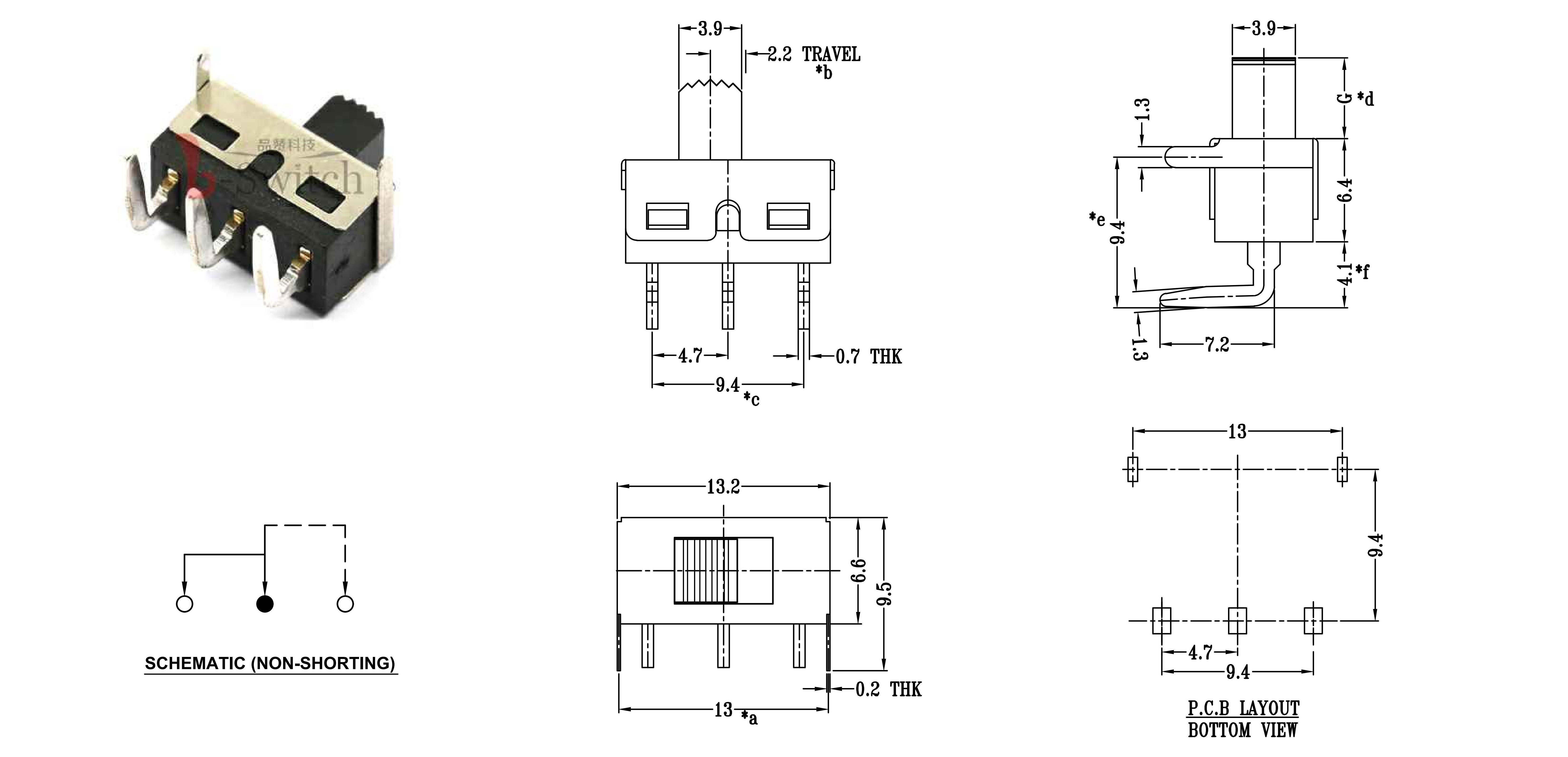CONTACT ARRANGEMENT: 1P2T SLIDE SWITCH