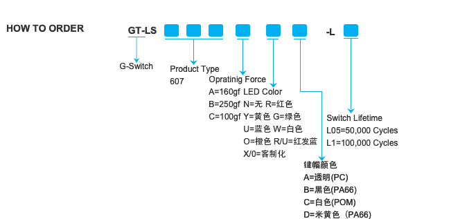 侧按带灯轻触开关,可选带键帽或不带,多种LED发光颜色可选,寿命10万次。