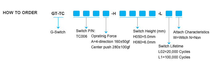 斜五向开关有6PIN与8PIN两款可选,柄长有5.0和6.0mm两种。