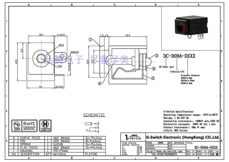 产品名称:DC插座 DC-009A