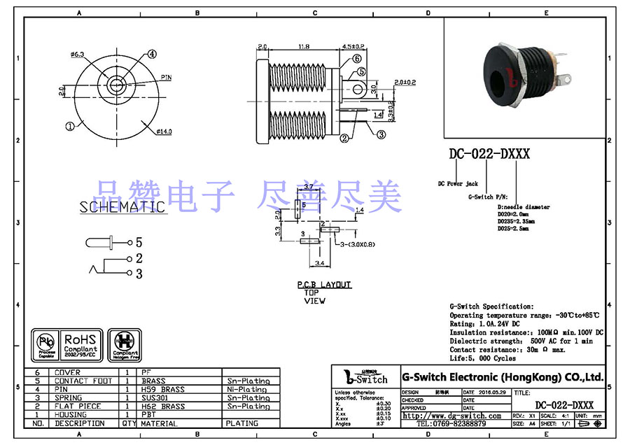 以上由品赞电子(东莞)有限公司,为您详细说明。www.dg-switch.com
