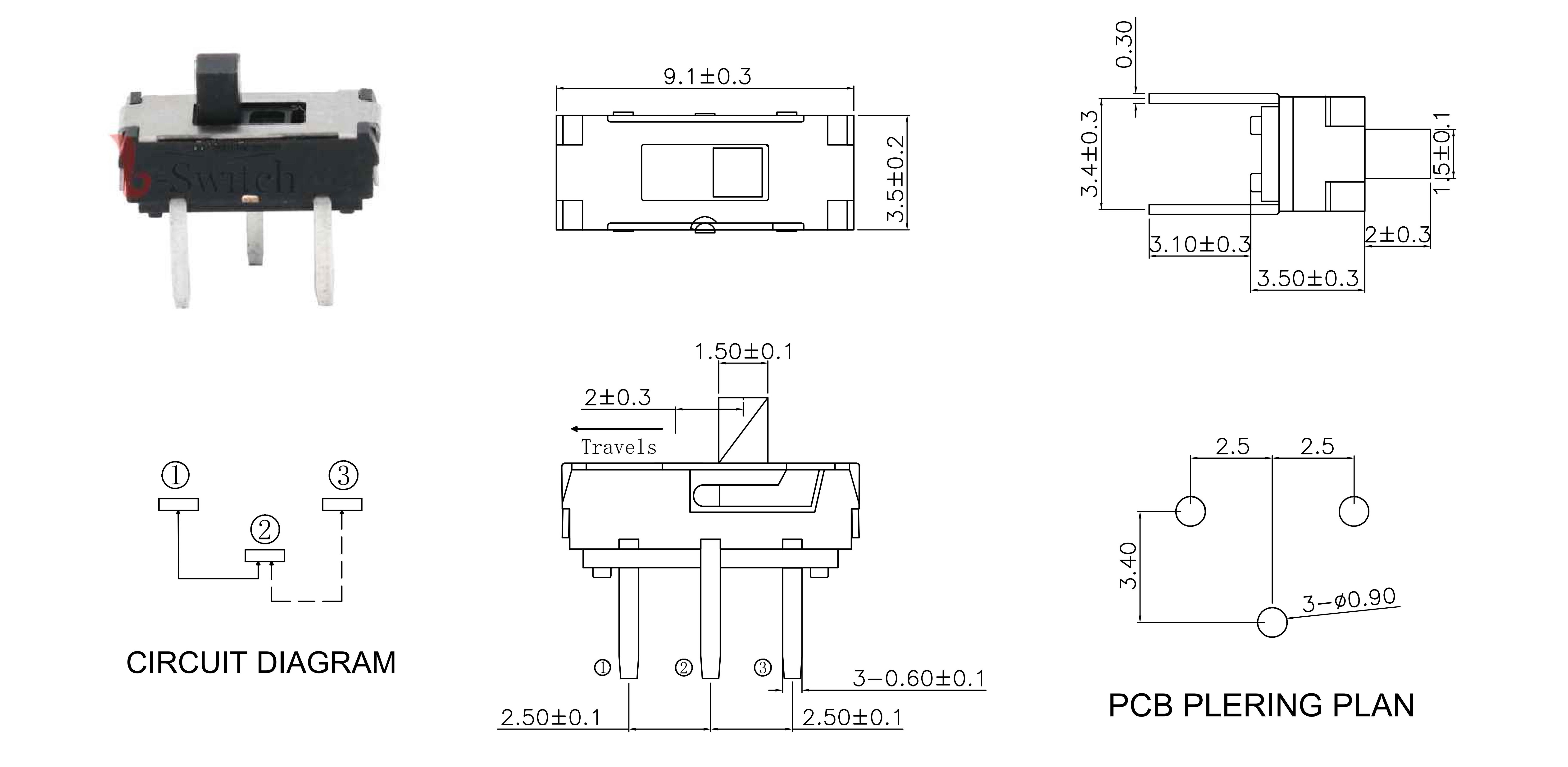 CONTACT ARRANGEMENT: 1P2T SLIDE SWITCH