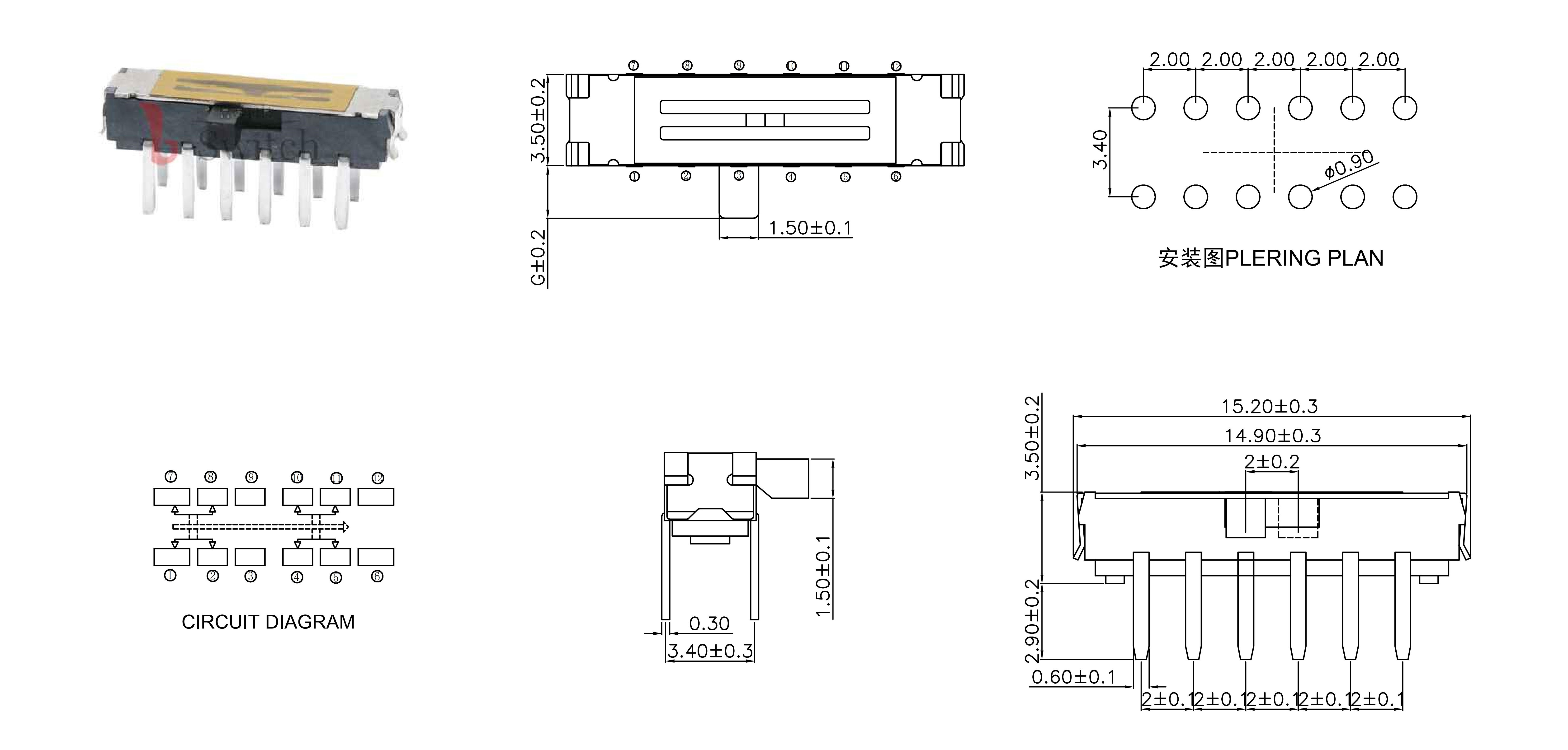 CONTACT ARRANGEMENT: 1P2T SLIDE SWITCH
