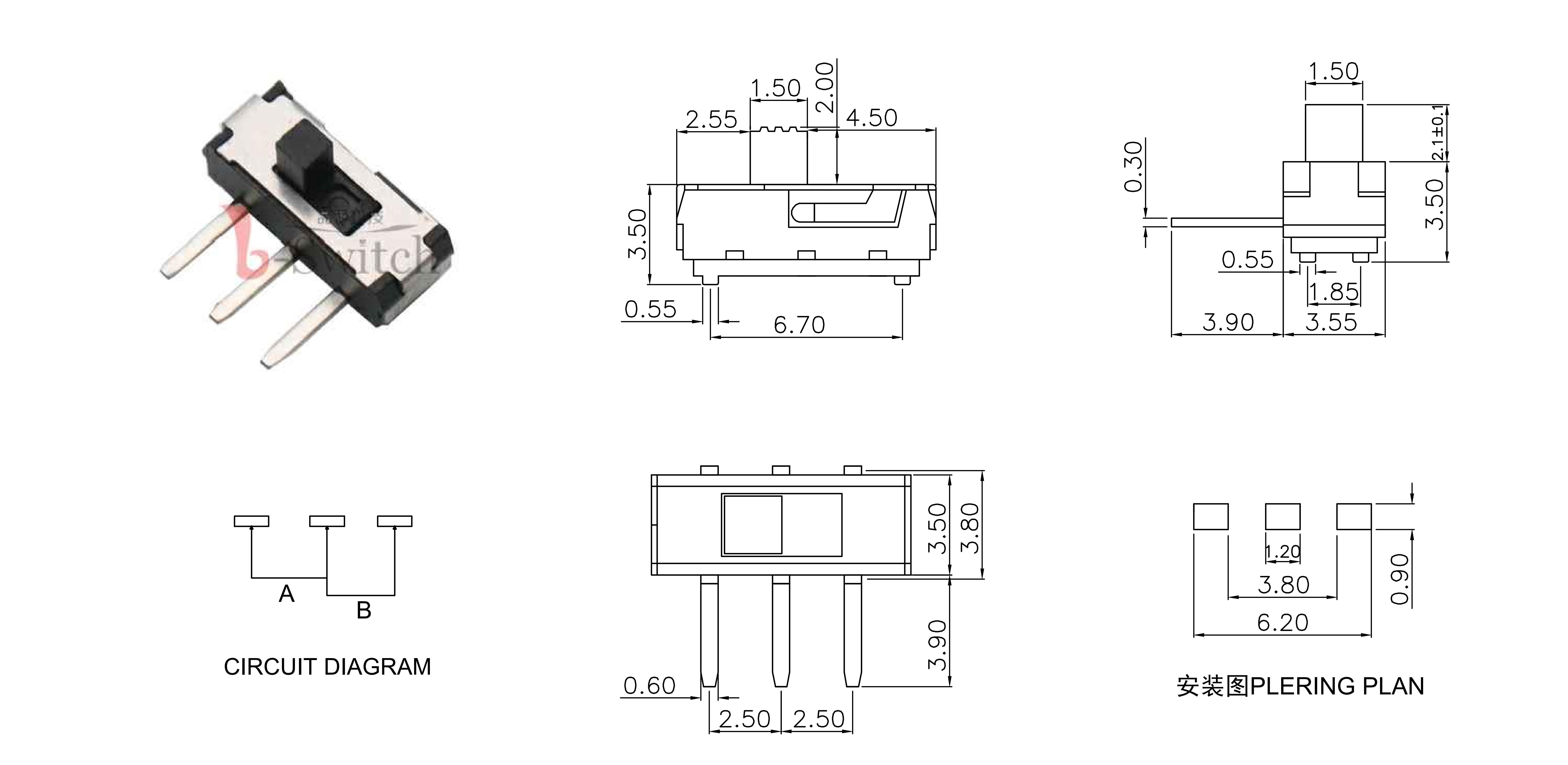 CONTACT ARRANGEMENT: 1P2T SLIDE SWITCH