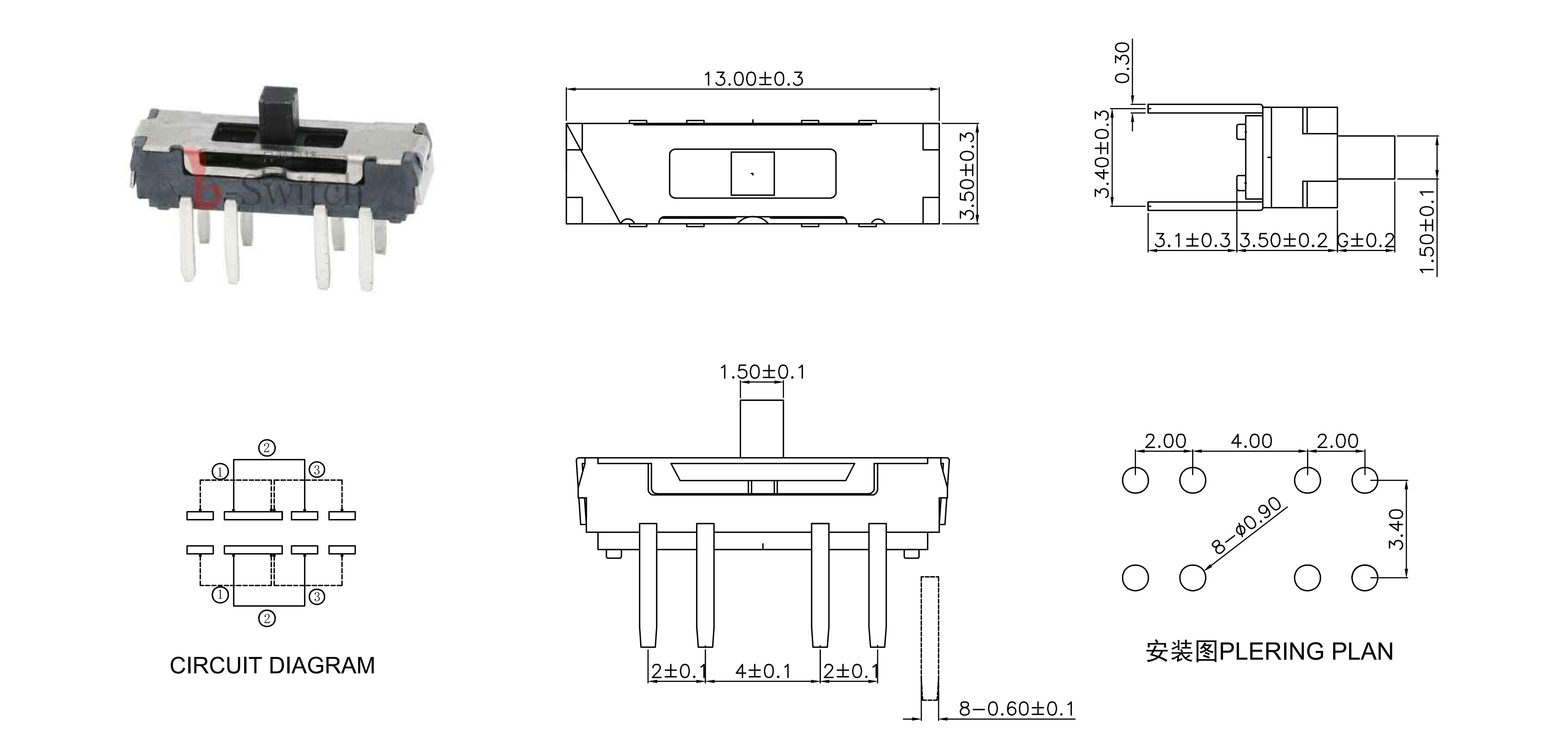 CONTACT ARRANGEMENT: 1P2T SLIDE SWITCH
