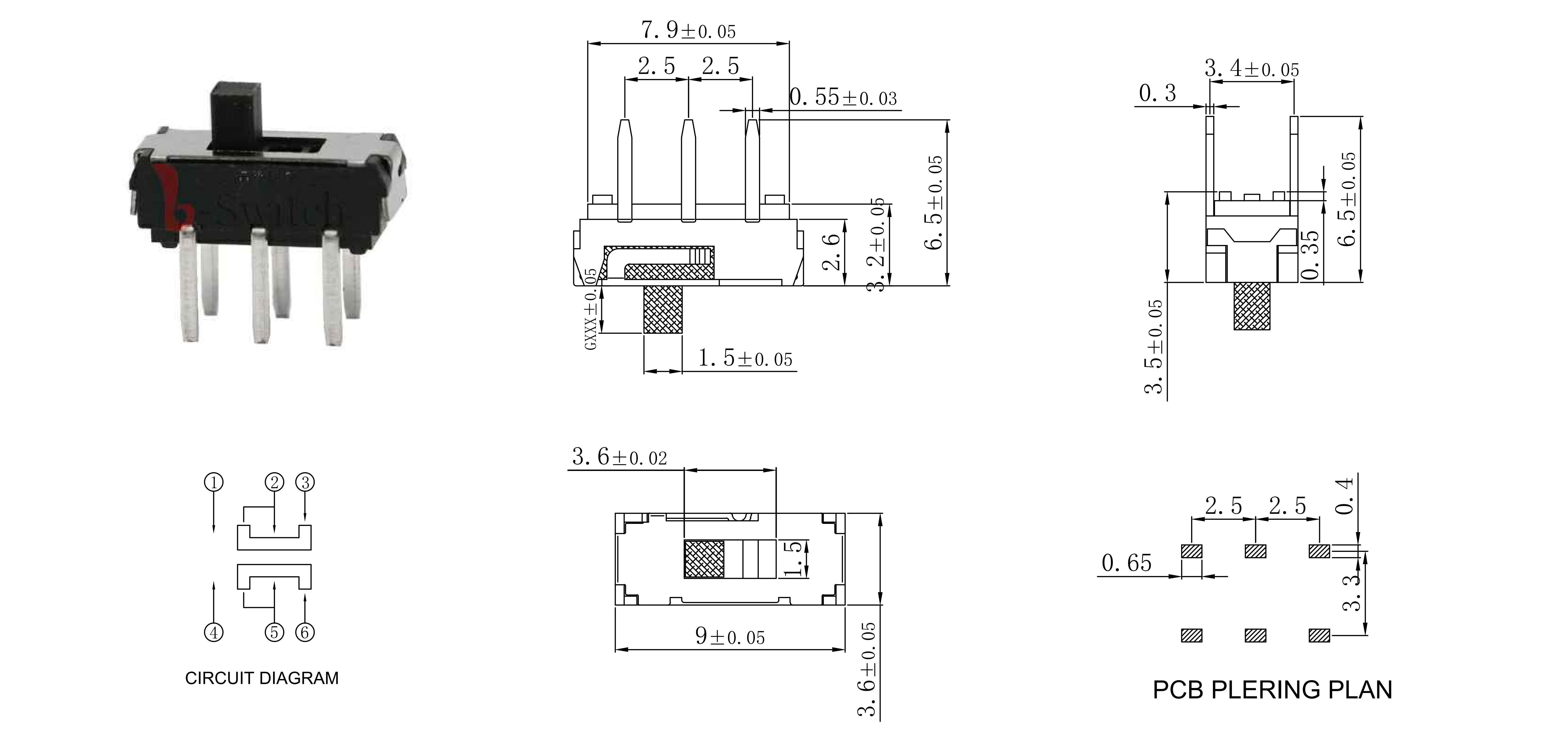 CONTACT ARRANGEMENT: 1P2T SLIDE SWITCH
