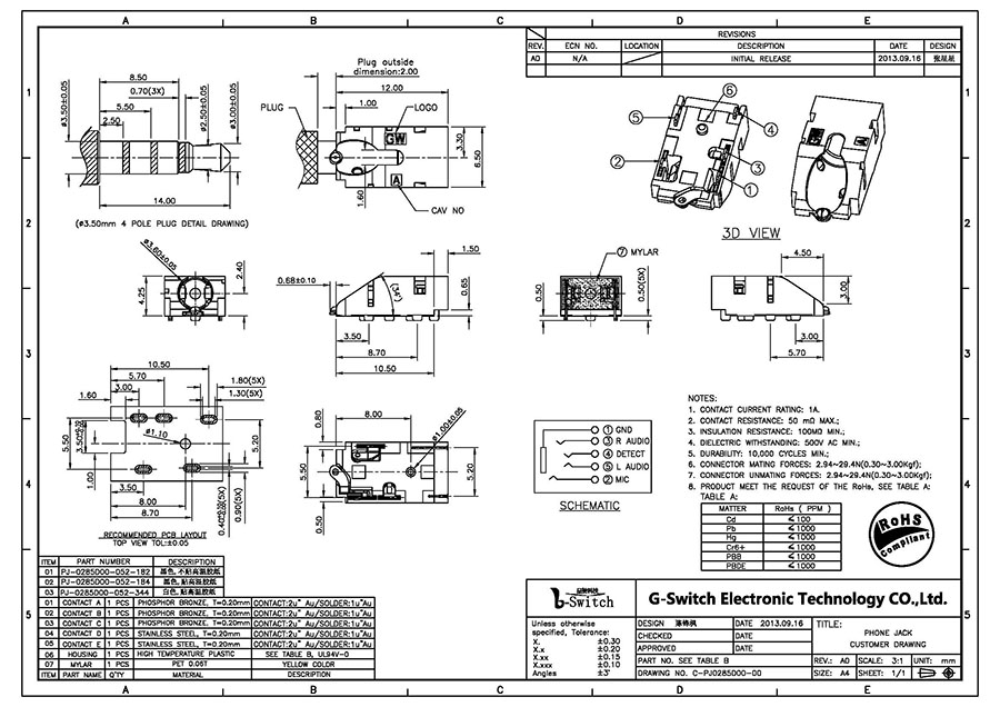 | Designation 品名: | Φ3.5 PHONE JACK | ||||