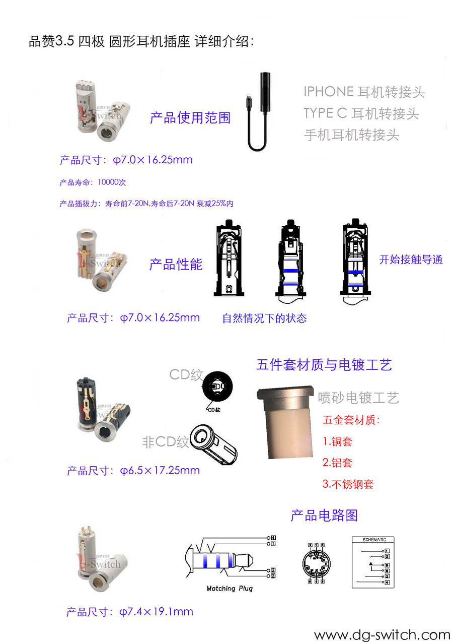 品赞电子(东莞)有限公司专业生产:高端耳机插座、圆形耳机插座、转接头专用耳机插座、焊线式耳机插座、3.5 四极 耳机插座、音频母座、高寿命耳机插座等耳机插座。