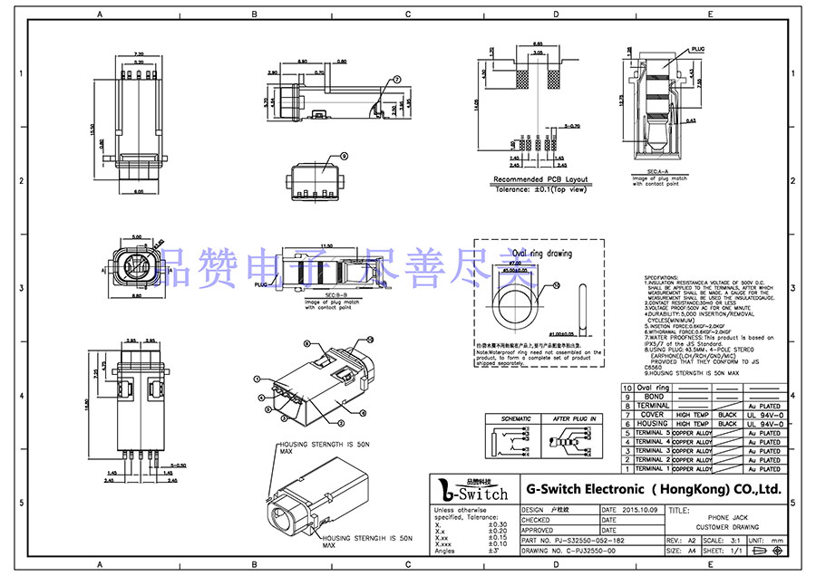 | Designation 品名: | Φ3.5 PHONE JACK | ||||