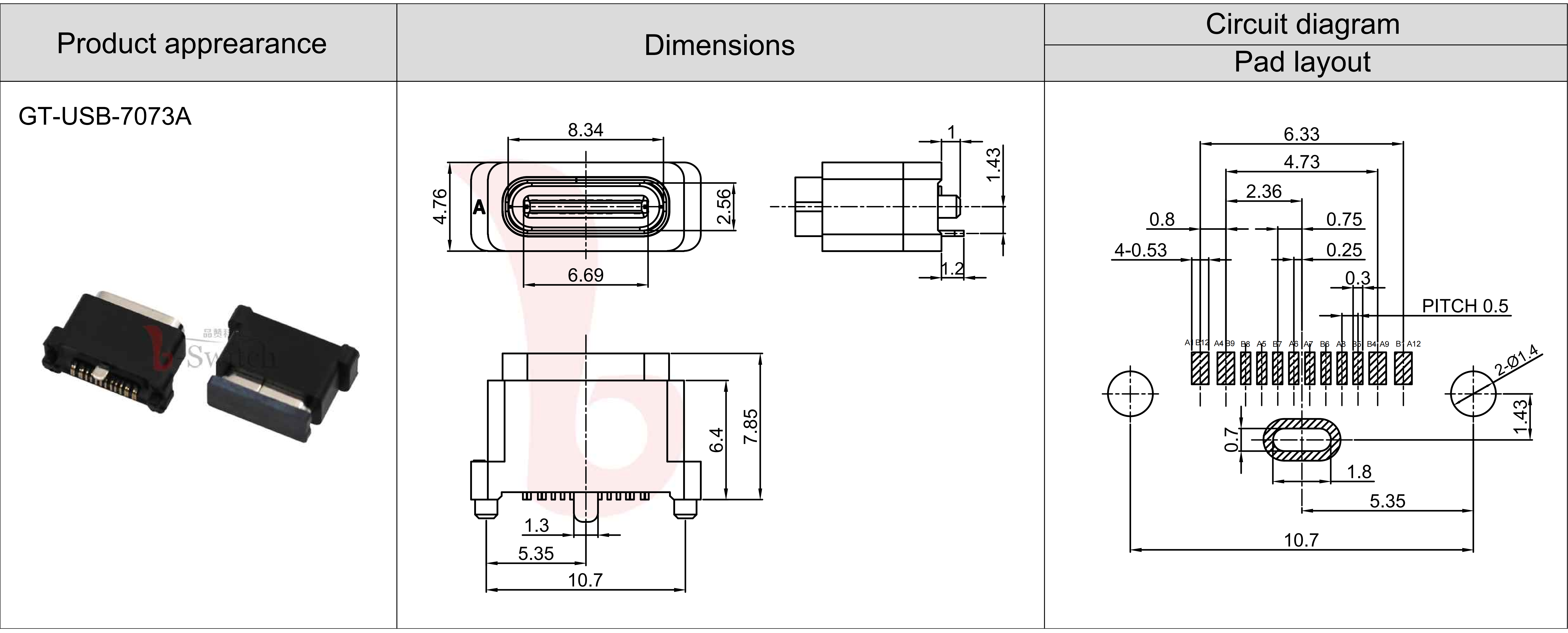 防水IPX7,立贴H7.85mm,带防水圈,5A |