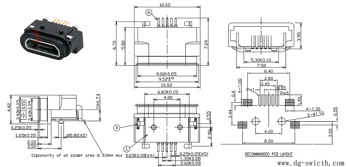 精密MICRO 5PIN USB母座带柱 防水等级IP67