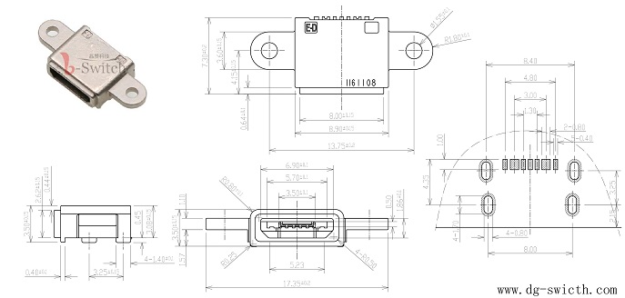 MICRO USB 7PIN母座带固定耳 防水等级IP67。