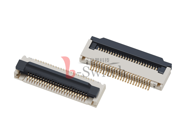 0.5mm Pitch H1.0mm:形态前掀盖下接;90°安装角度;4~50pin。