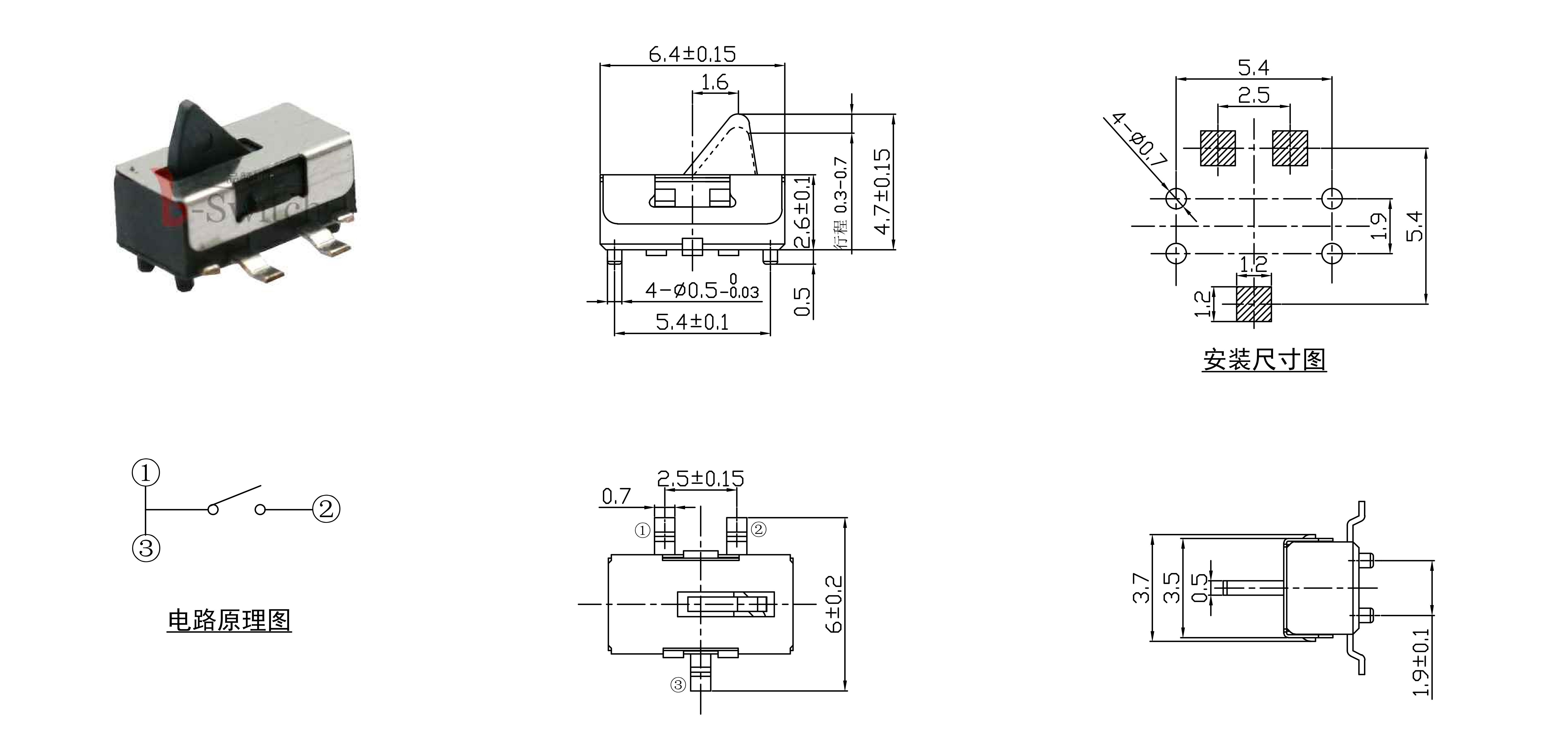 开关的动作方向为垂直放置开关向推柄中心逐渐地
