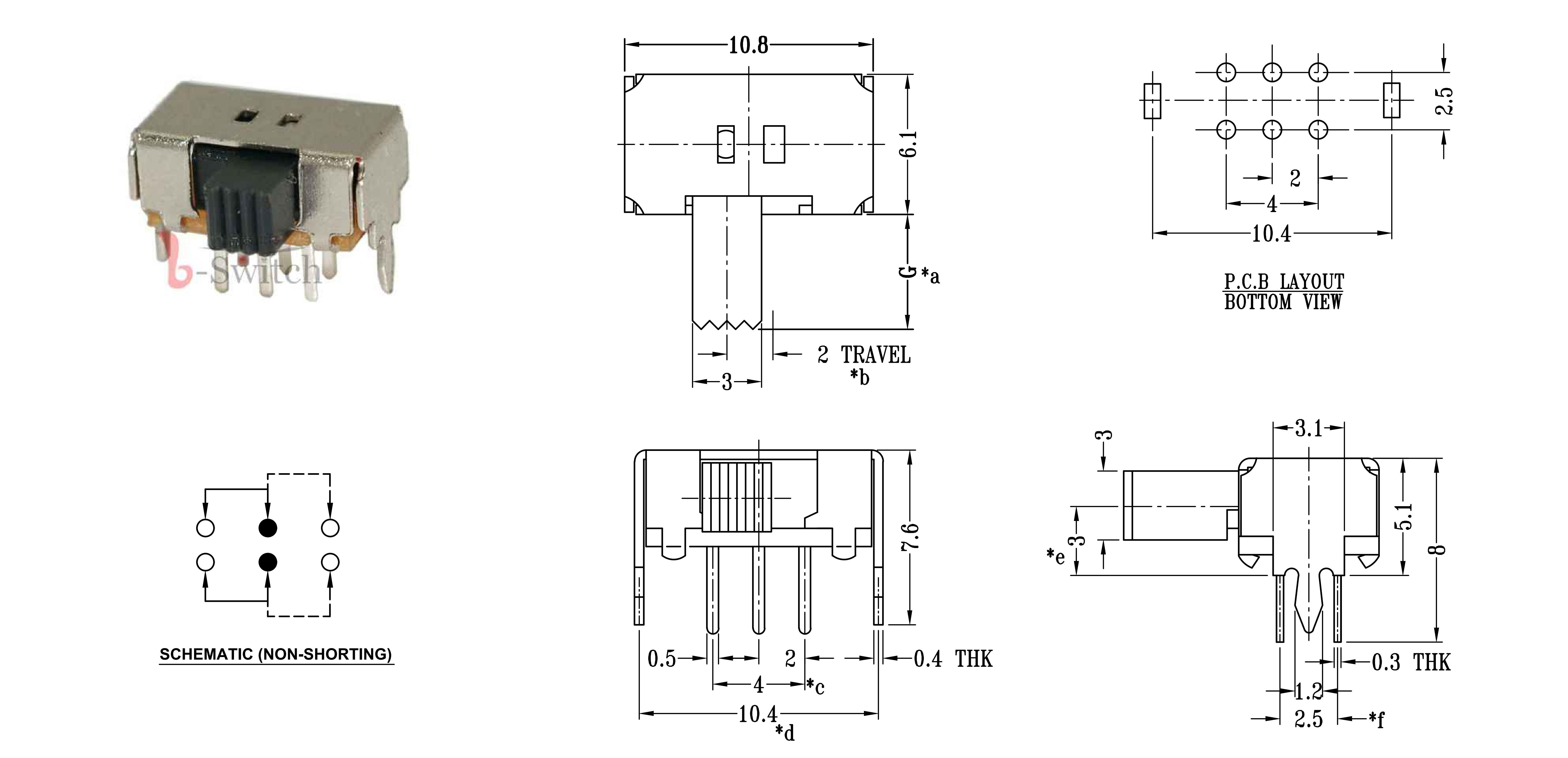 CONTACT ARRANGEMENT: 1P2T SLIDE SWITCH