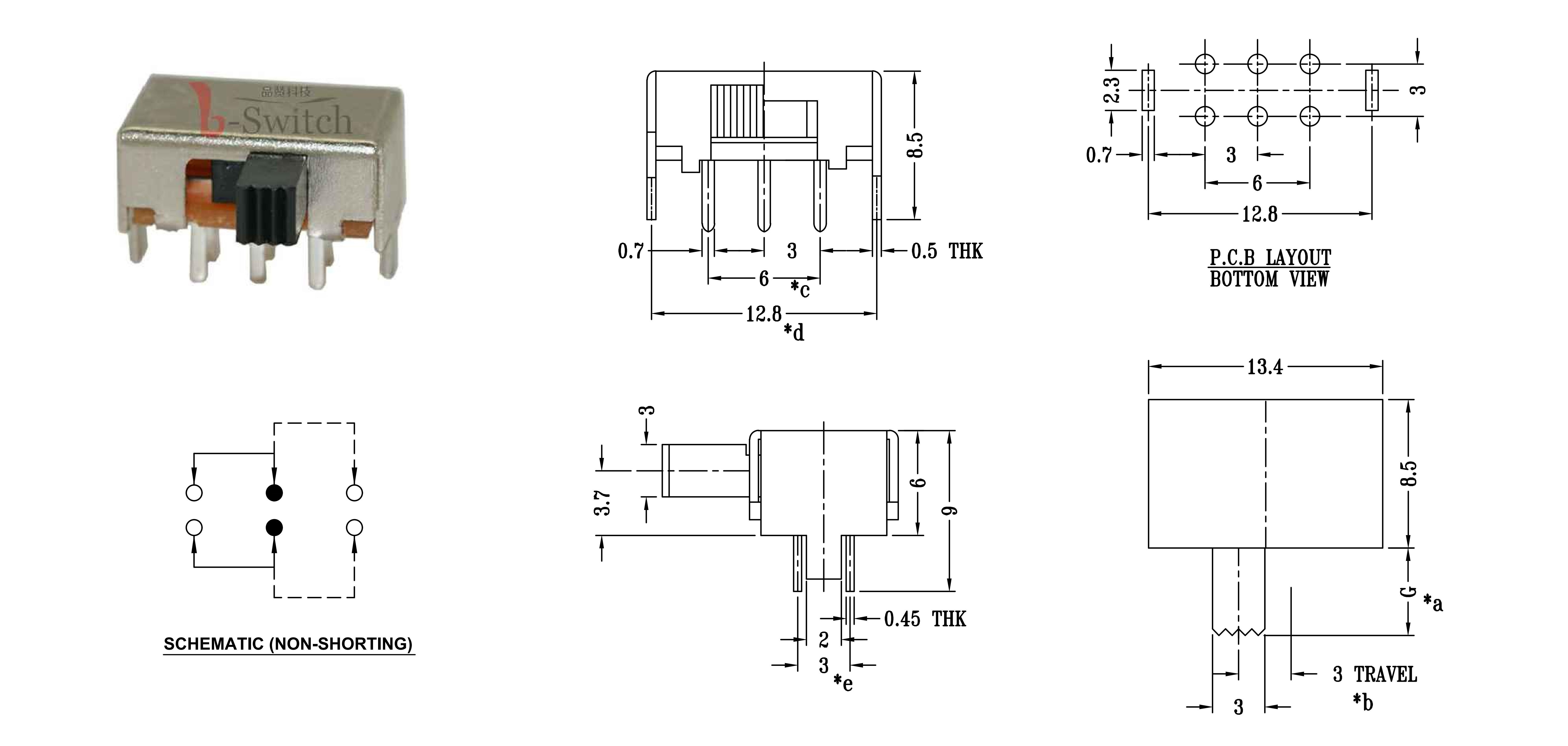 CONTACT ARRANGEMENT: 1P2T SLIDE SWITCH