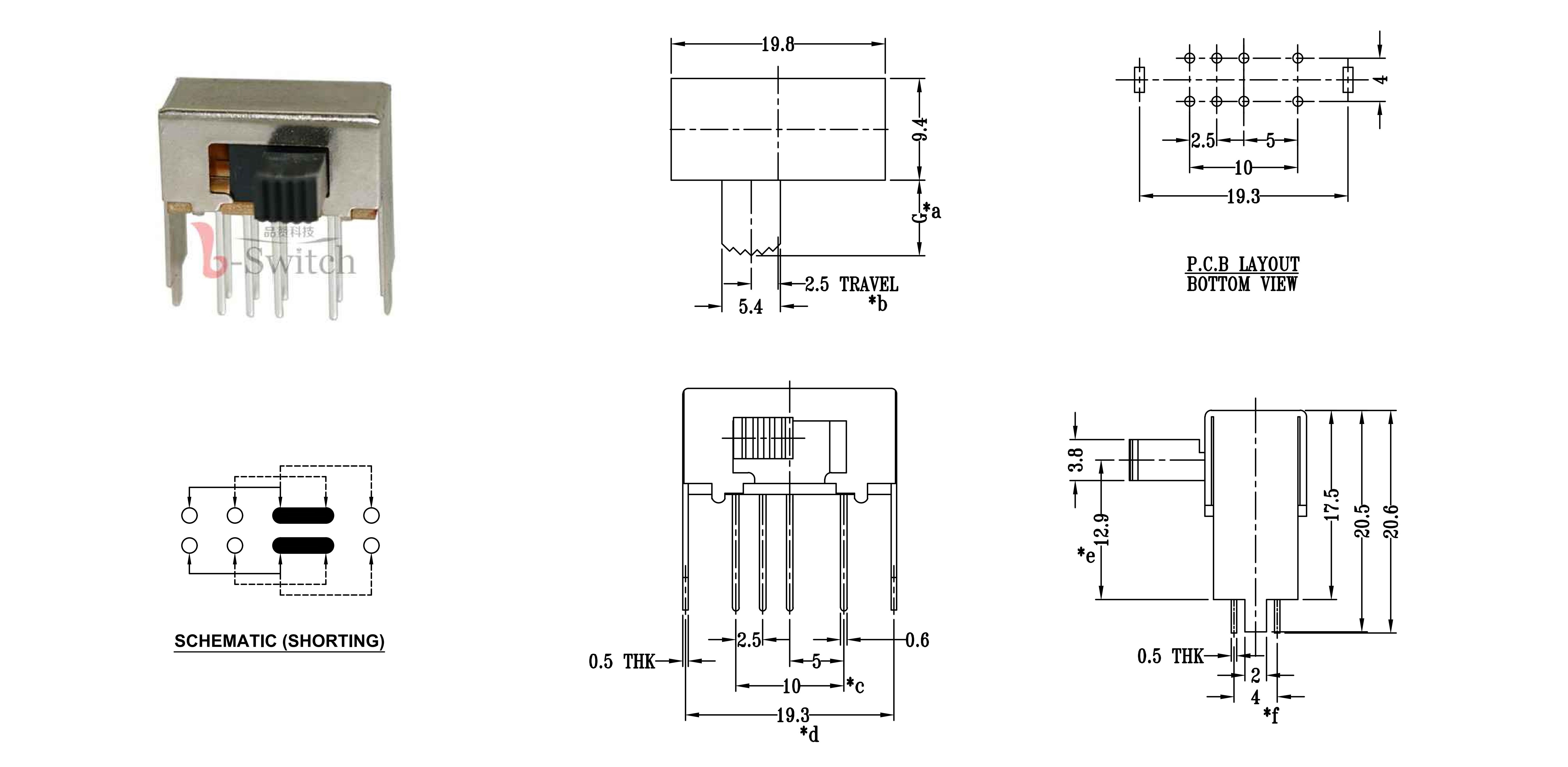 CONTACT ARRANGEMENT: 1P2T SLIDE SWITCH
