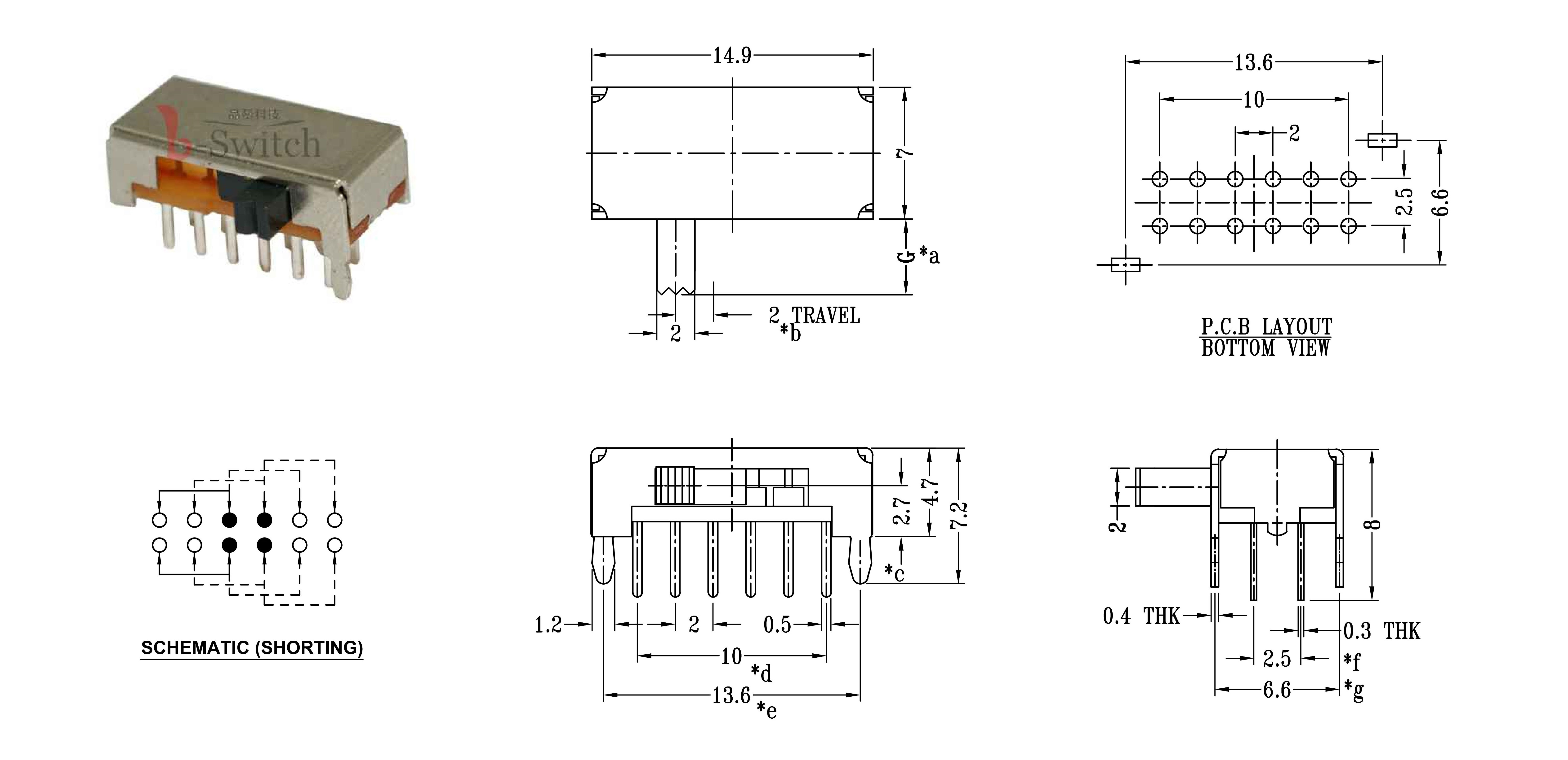 CONTACT ARRANGEMENT: 1P2T SLIDE SWITCH