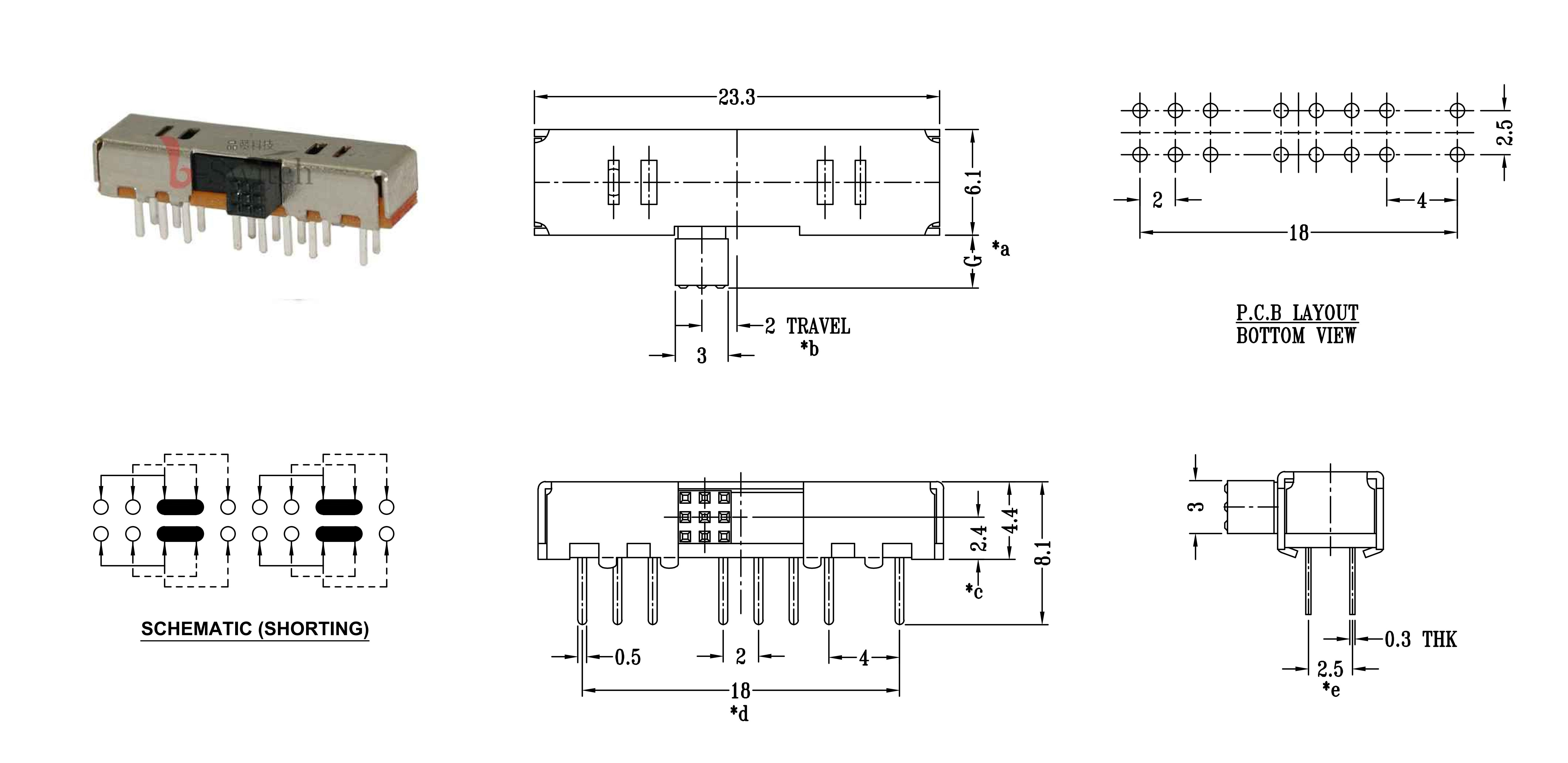 CONTACT ARRANGEMENT: 1P2T SLIDE SWITCH