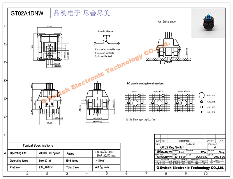 产品特点:青轴,带针脚,寿命长达2千万次,高稳定性,高一致性