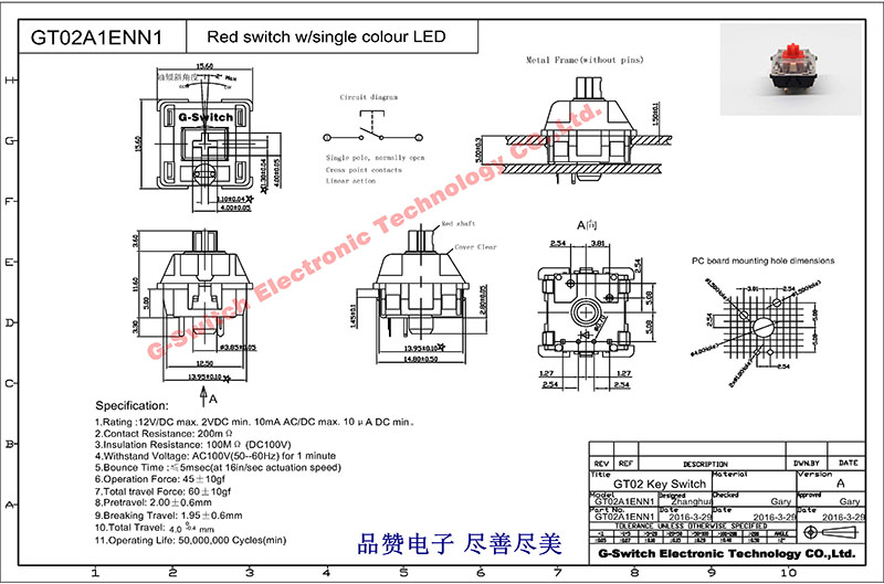产品特点:红轴,带针脚,寿命长达2千万次,高稳定性,高一致性