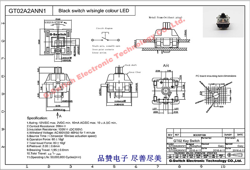 声明:有关于产品的规格、参数、寿命、工作温度、手感、防水等级等数据,只代表品赞电子内部的测试结果,如需详细测试方式,请联系品赞业务人员。