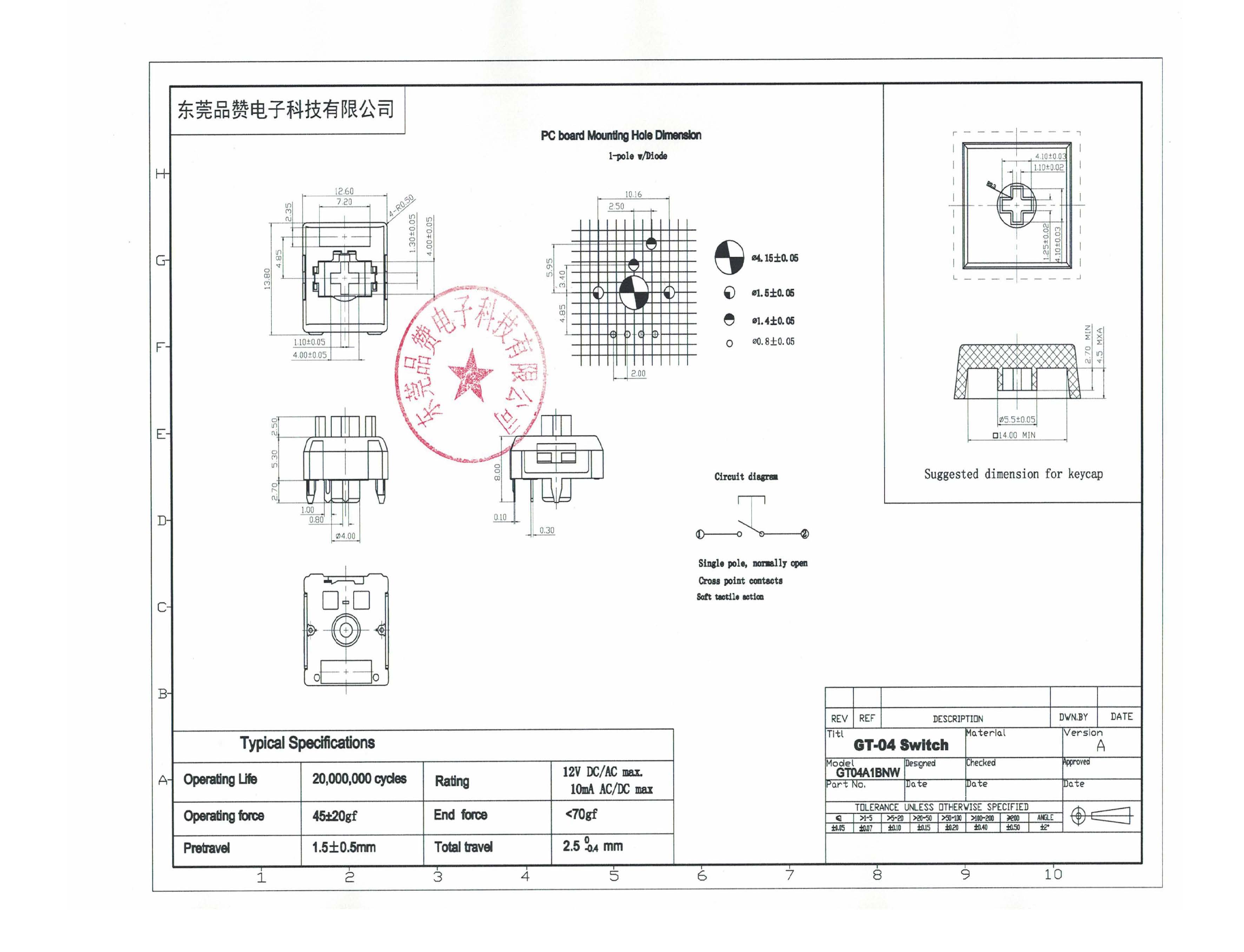 声明:有关于产品的规格、参数、寿命、工作温度、手感、防水等级等数据,只代表品赞电子内部的测试结果,如需详细测试方式,请联系品赞业务人员。