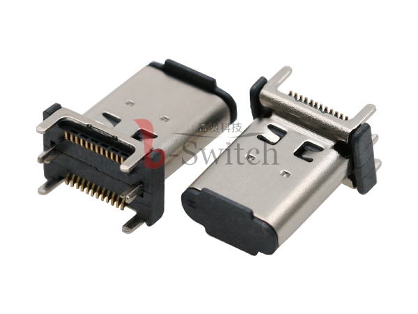 24Pin立贴Type C母座:4脚固定带柱;H10.0mm,插入深度5.1mm;5Gbp/s