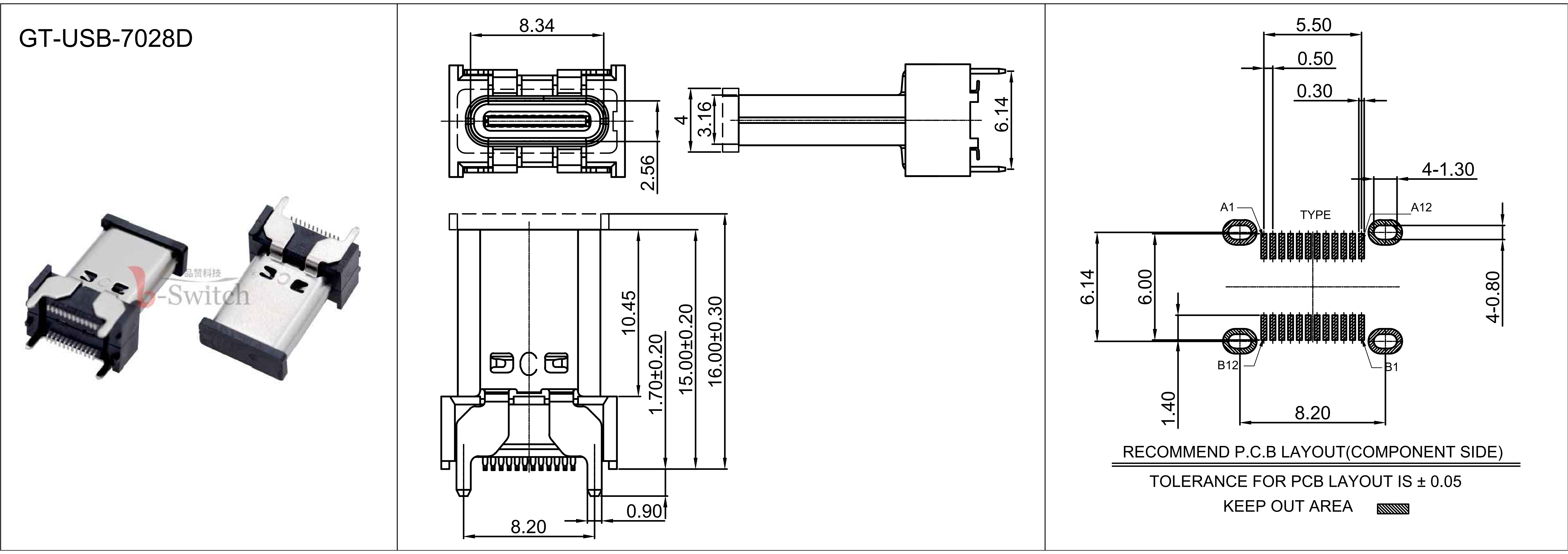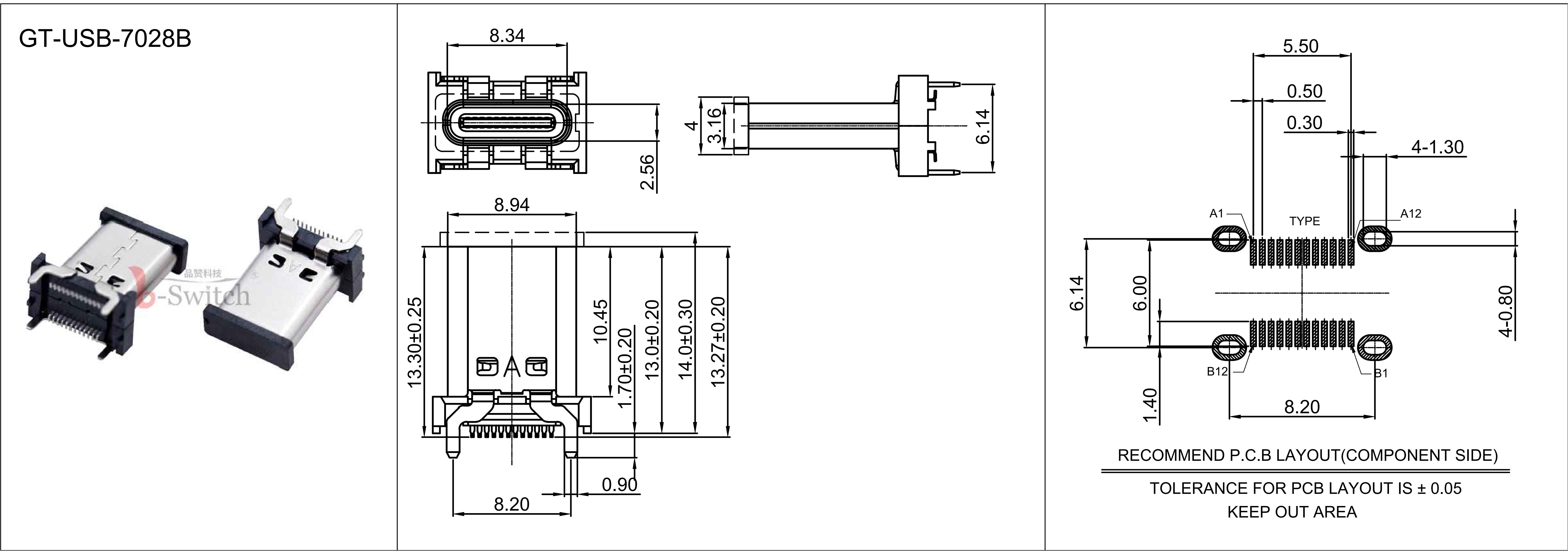 立式SMD TYPE-C 24PIN母座 H/12.0/13.0/13.5/15.0mm;USB4.0版本;5A电流。