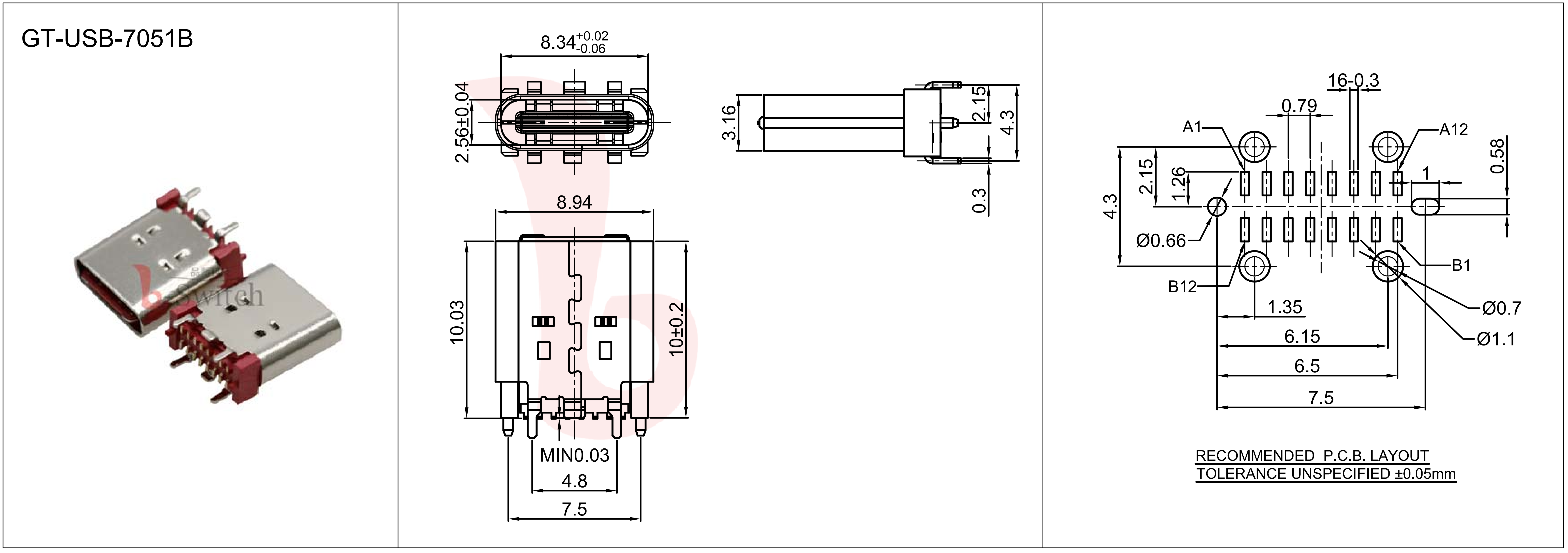 直立式16PIN TYPE C母座:TID认证款;长度有10.0与10.50两种长度,电流最大可承受5.0A,胶芯颜色有黑、白、蓝、红等颜色可选。