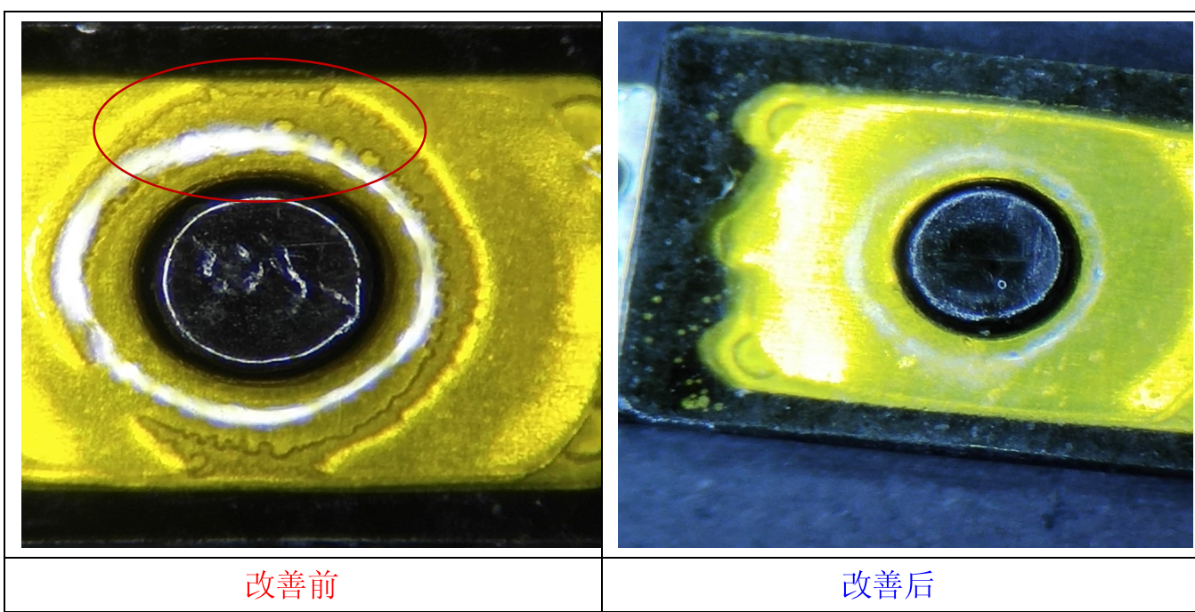 1、针对不良样品进行拆解分析,确定此不良原因贴膜的胶水过多,高温后胶水液化粘住弹片,当胶水重新固化后膜与弹片已经完全贴牢,导致手感不良。如下图: